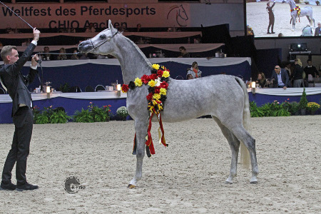 additional information: 152cm; Junior Bronze Champion Bairactar Memorial Int. B-Show, Marbach 2011; Reserve Champion Colt German National Championships Aachen 2011;Silver ribbon awarded at stallion licensing show Luhmuehlen, Germany | |