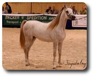 | additional information: 2000 German National Champion Filly; 2000 Asil World Cup Champion Filly; 2000 All Nations Cup Champion Filly; 2000 European Reserve Champion Filly; 2007 Champion Mare Orientalica; exported to Ajman Stud, UAE | |